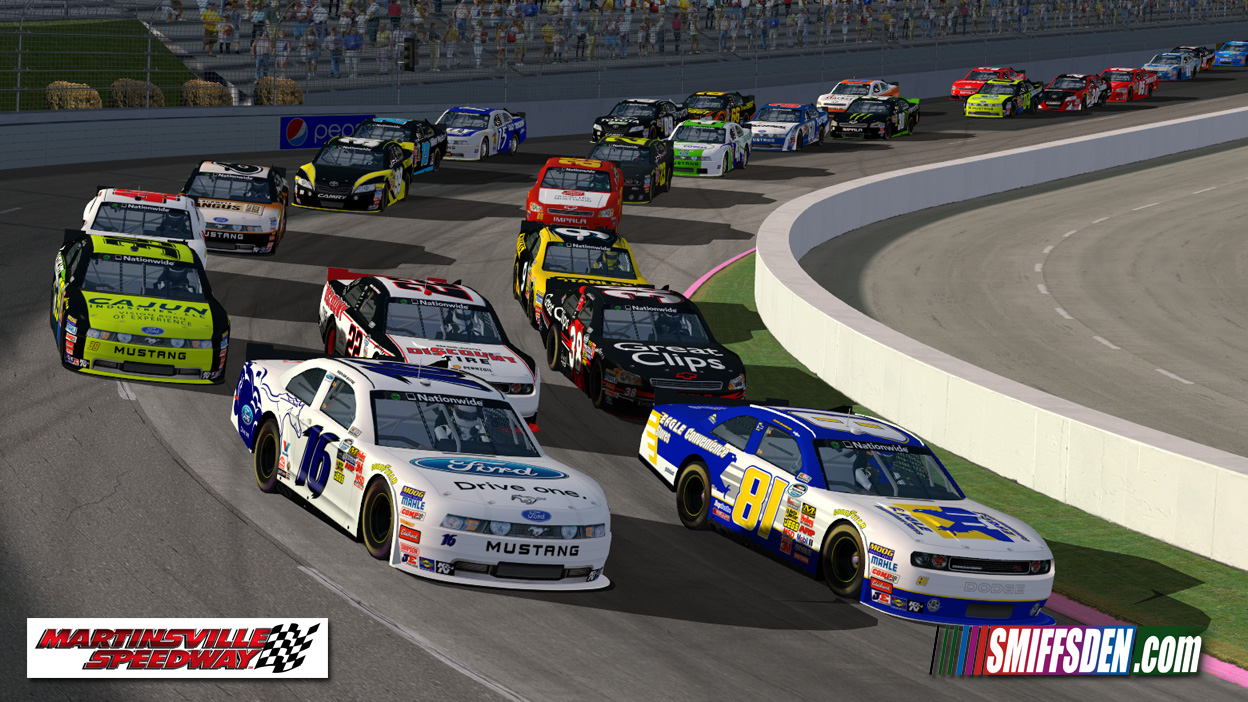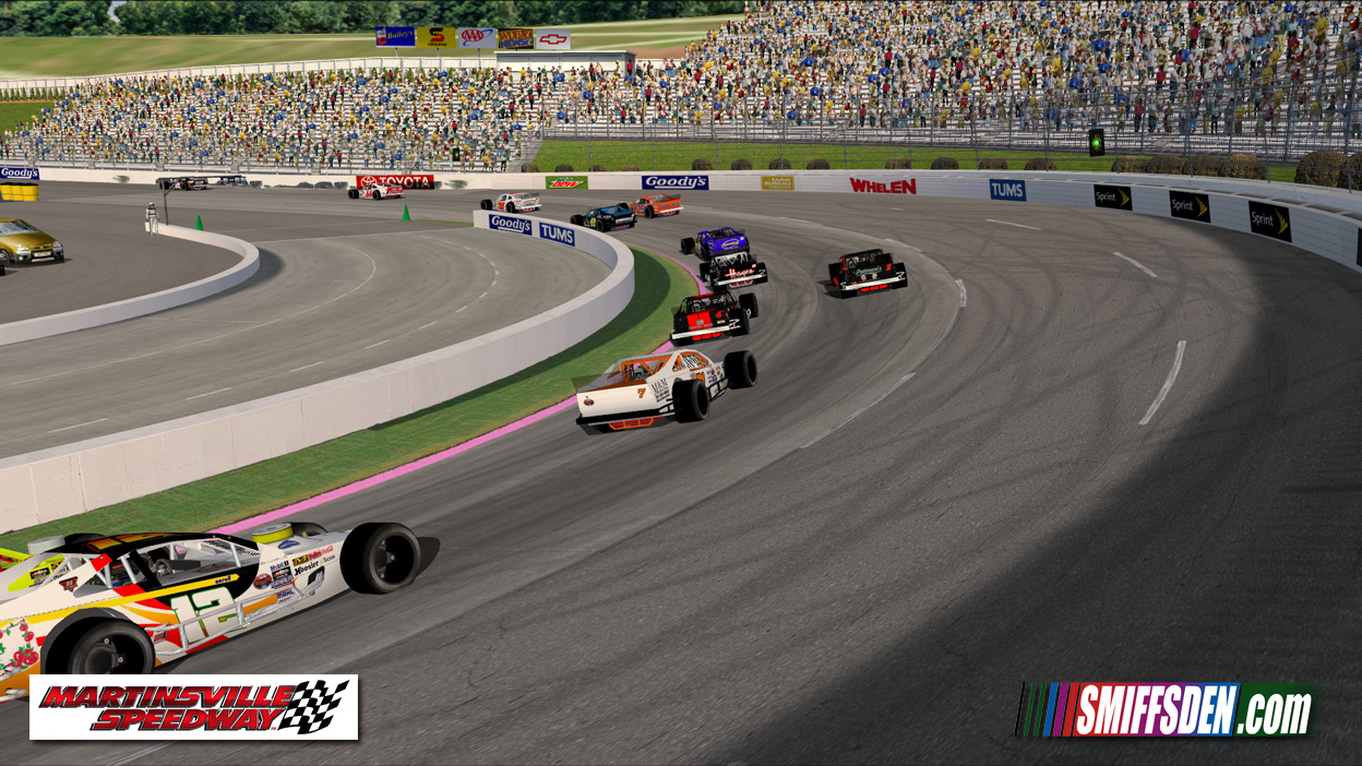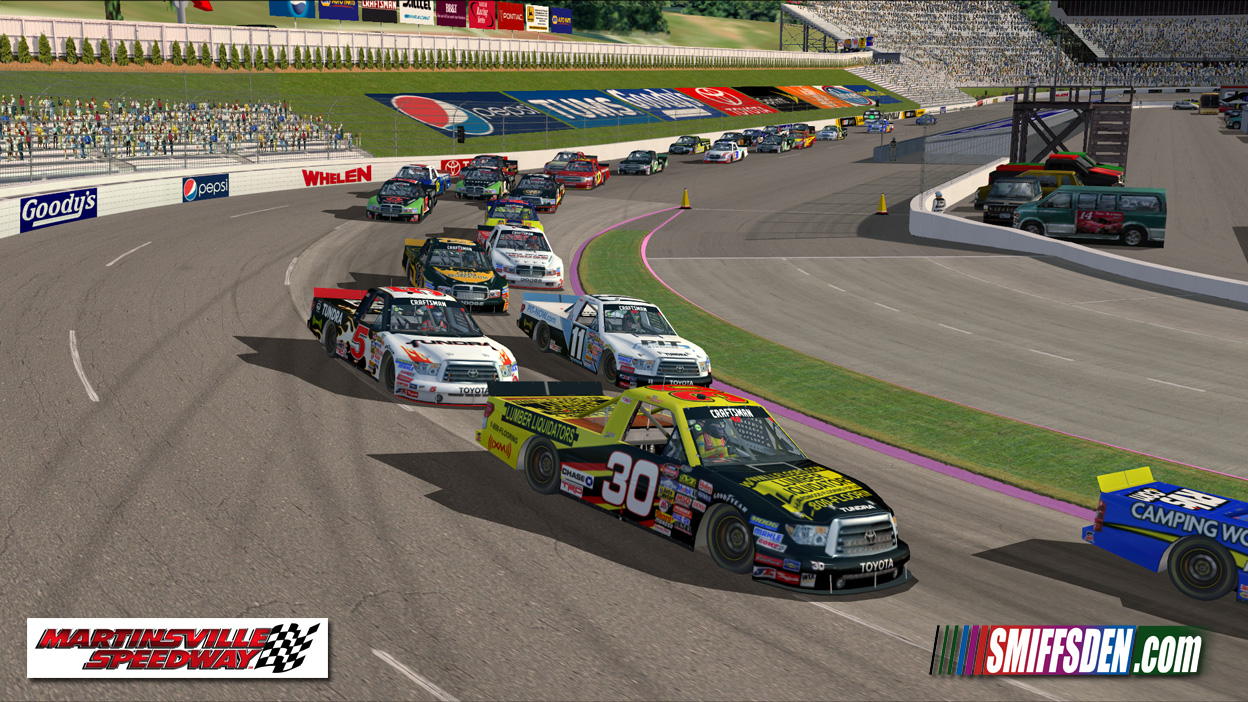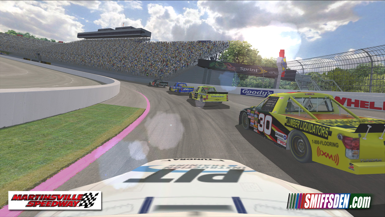 There are a few signage issues, mainly that they are best guess, this track is being used the week after the actual race so most of the trackside signage is estimates based on photo's posted on the Martinsville facebook page in the weeks leading up to the race and Cup practice.