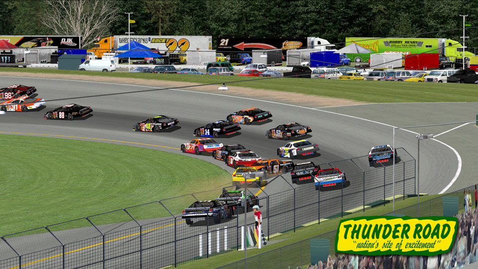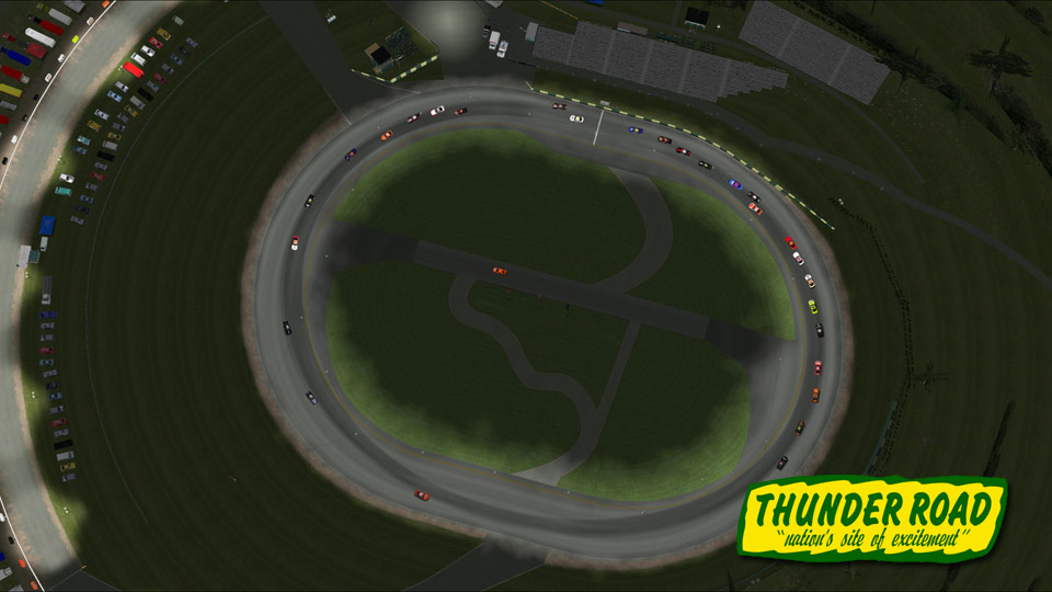 This NR2003 version of Thunder Road is an attempt to closely resemble the track as it appears in its current state. It is not, however, an exact replica, nor do the limits of NR2003 allow it to be. This project represents the culmination of over four years of work from many contributors. It is a tribute to all of the many fans and competitors who love and visit Thunder Road and stands as a small replica to help them relive the great door-to-door, beatin' and bangin' action of one of New England's and the country's most beloved tracks.