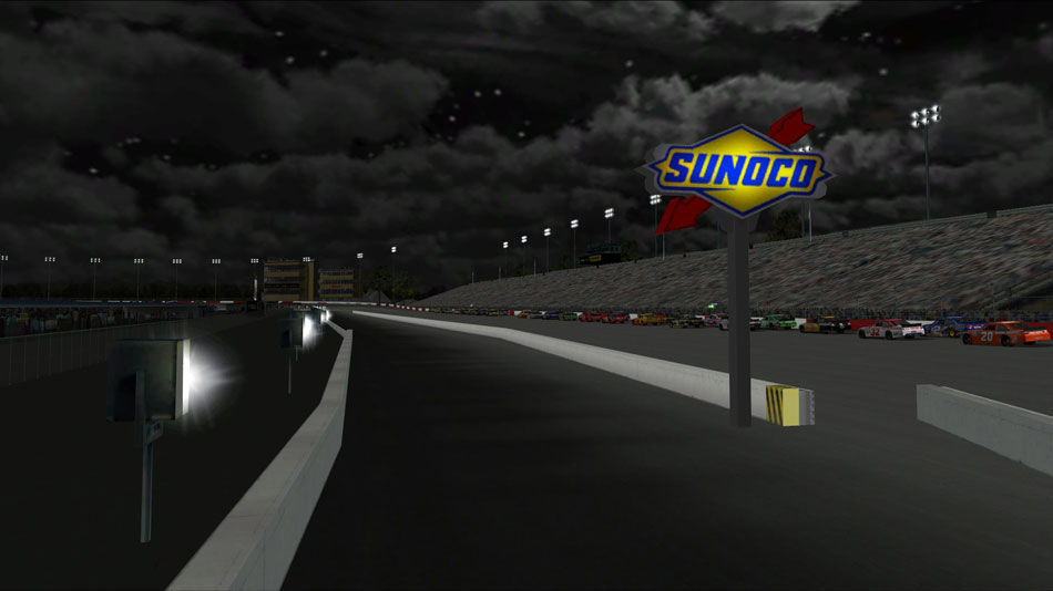 Along with the other issues listed, there is a noticeable frame-rate drop in the frontstretch of the track when running with other cars (especially Hi-rez ones) and all Graphics Options on or enabled - I believe this to be a rouge texture or the new turn 1 grandstand J-Rock built but didn't have time to fix it.
