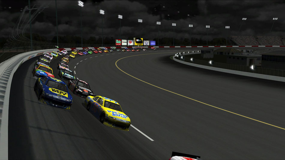The Retro Walls wrap around the entire wall, it was only when I was watching the Nationwide race that I realised this wasn't the case, but it looks pretty cool anyway, our tracks need to be available a week in advance before the race for guys to practice so the track is 99% guesswork, but it looks pretty close.